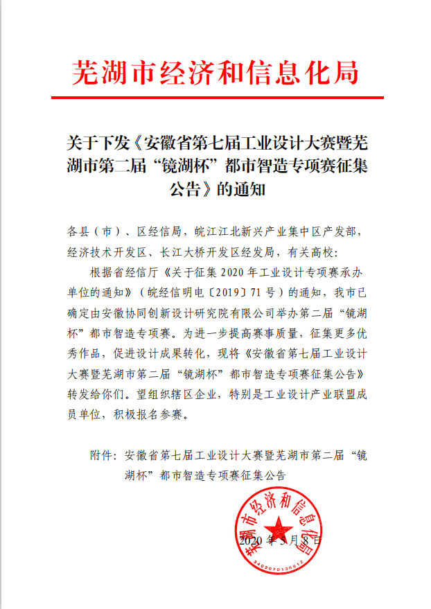 為進(jìn)一步加快蕪湖市現(xiàn)代制造產(chǎn)業(yè)的升級(jí)轉(zhuǎn)型,加速工業(yè)設(shè)計(jì)與制造的融合,培養(yǎng)工業(yè)設(shè)計(jì)人才,決定舉辦安徽省第七屆工業(yè)設(shè)計(jì)大賽暨蕪湖市第二屆“鏡湖杯”都市智造專項(xiàng)賽。